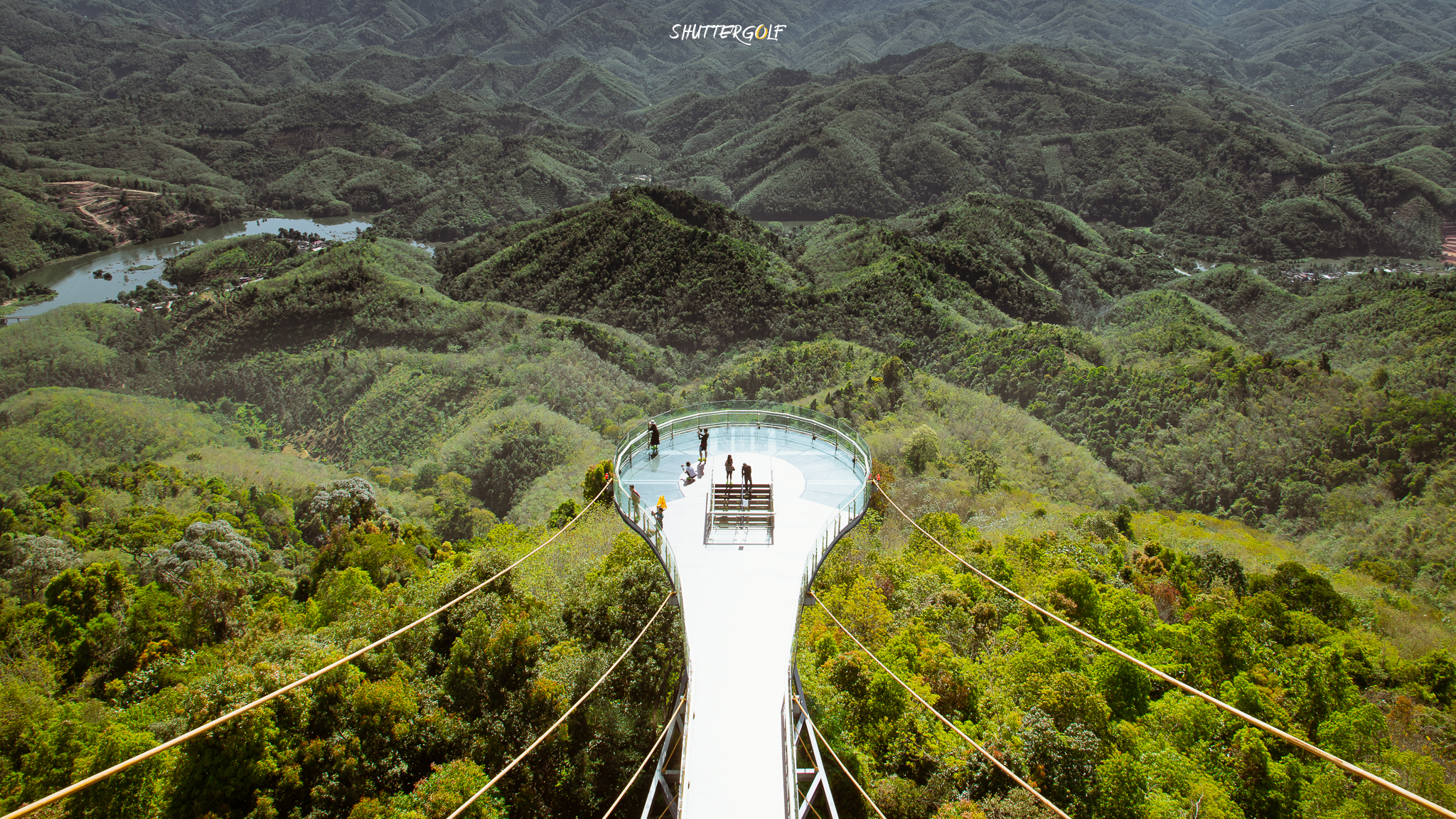 ตั้งอยู่ที่บ้านธารมะลิ ต.อัยเยอร์เวง อ.เบตง จ.ยะลา หลายคนต้องการมาเยือนที่นี่เพื่อชมทะเลหมอก แต่ ShutterGolf ตัดสินใจที่จะไม่ขึ้นมาแต่เช้า เพราะไม่ต้องการดูทะเลหมอก เนื่องจาก ShutterGolf วิ่งในป่ามา จึงเห็นหมอกมากมายอยู่แล้ว กลับกลายเป็นว่าได้เห็นที่นี่ในแบบที่เห็นมิติของหุบเขาต่าง ๆ มากมายพร้อมสายน้ำ เมื่อขับรถมาถึงลานจอดรถแล้ว จะมีรถสองแถวหรือมอเตอร์ไซค์ให้นั่งขึ้นไปต่อ สำหรับมอตอร์ไซค์นั้น คิดค่าบริการ 20 บาท / คน / เที่ยว เมื่อไปถึงหน้าตึกแล้ว จะต้องซื้อตั๋วและซื้อรองเท้า (สวมทับไปกับรองเท้าเดิมของเรา ป้องกันไม่ให้พื้นกระจกเสียหายนั่นเอง) ShutterGolf กดลิฟต์ไปยังชั้น 6 (สูงสุด) ทันที แล้วค่อยเดินลงมาทีละชั้น