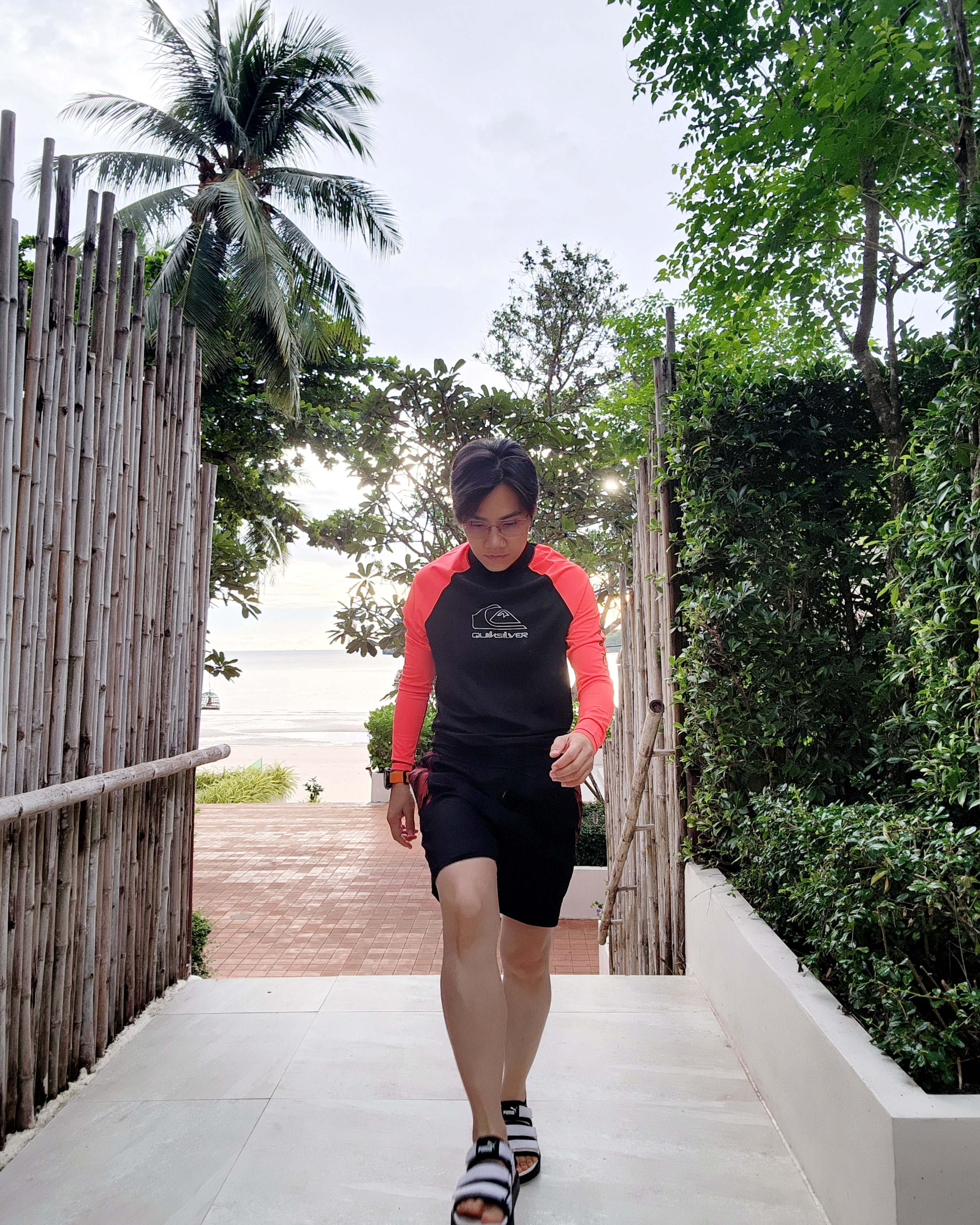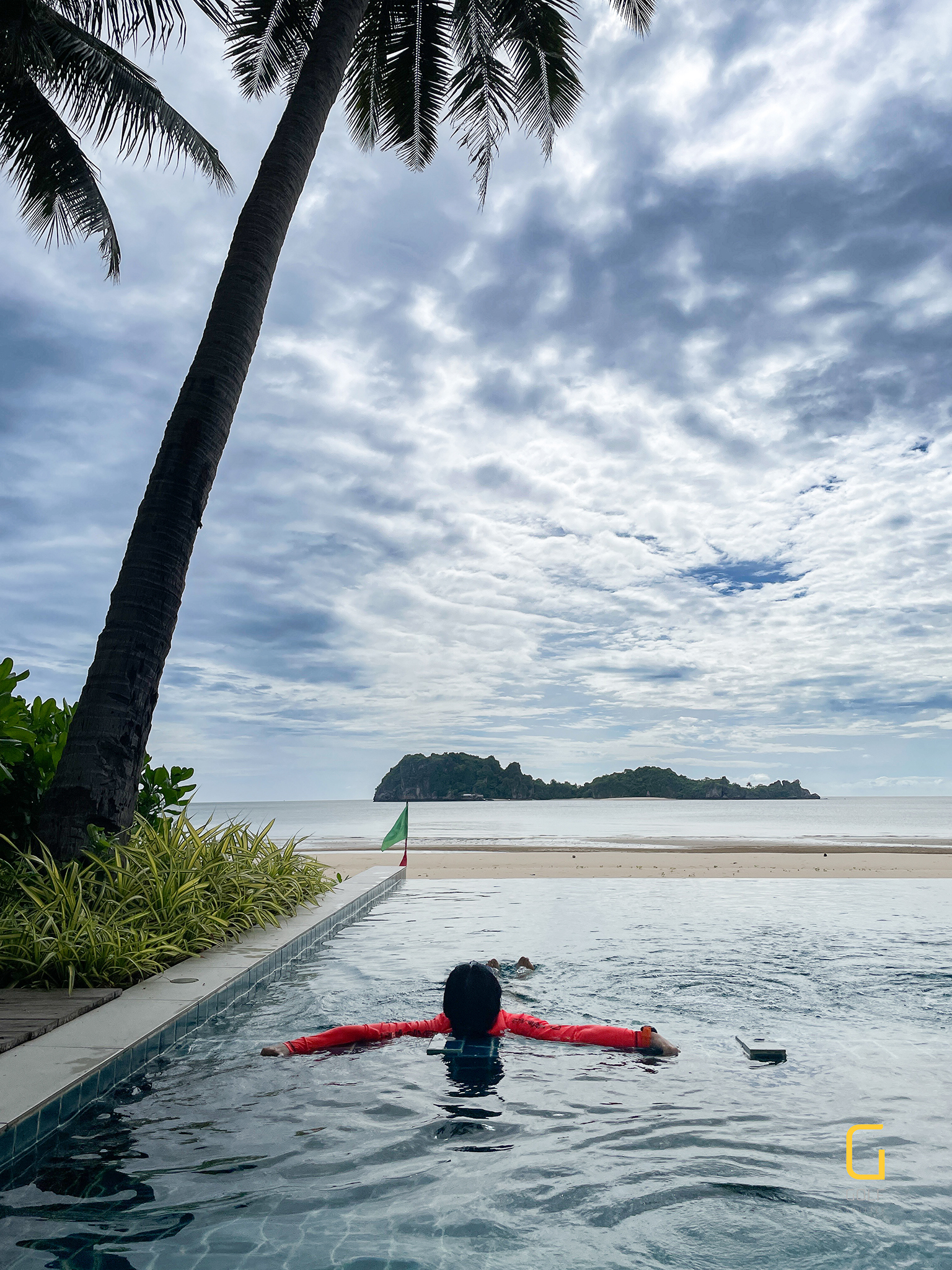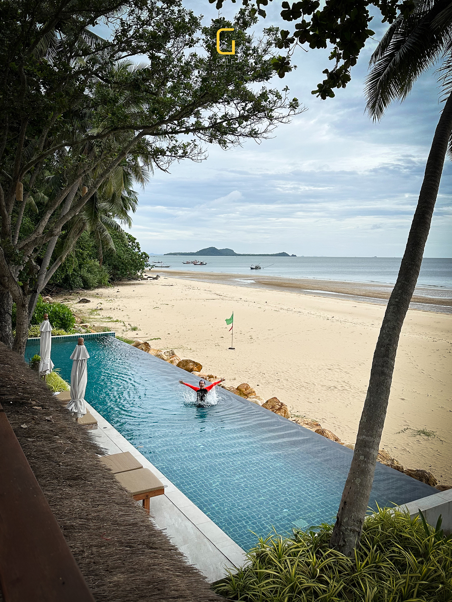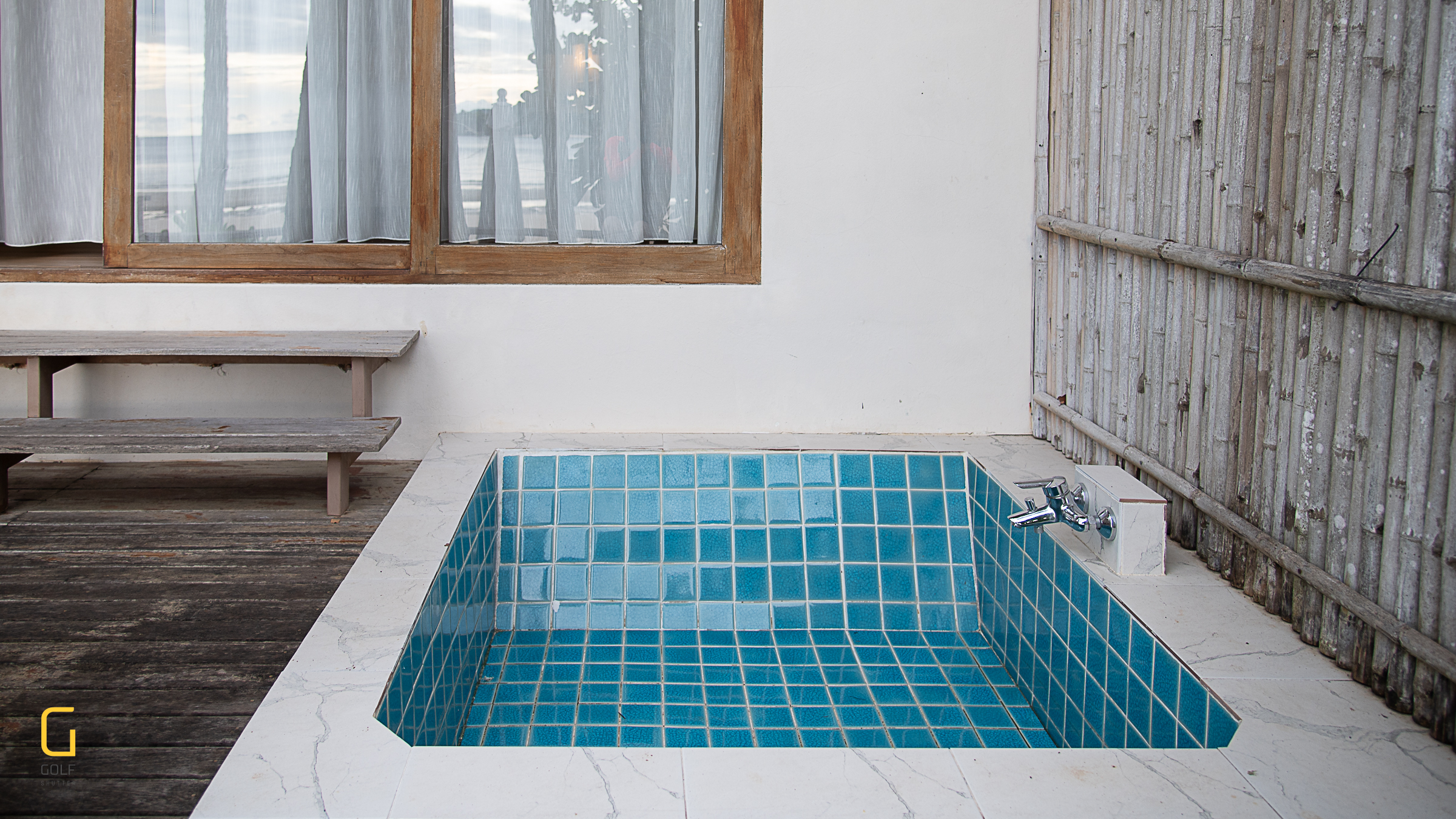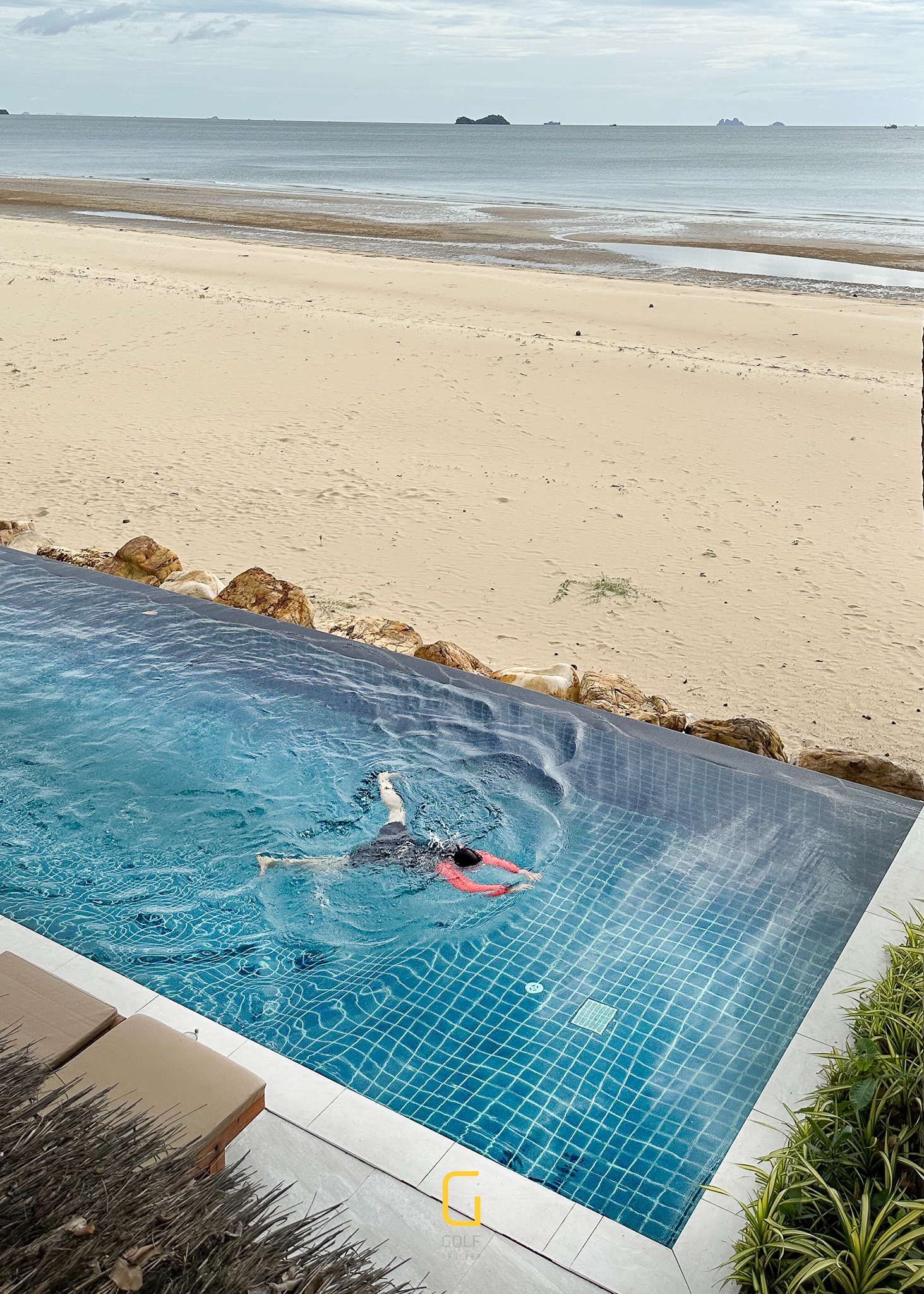 ก่อนจะรับประทานอาหารเช้า จะต้องออกกำลังกายก่อนเสมอ ในครั้งนี้ ShutterGolf เลือกที่จะว่ายน้ำ เพราะเป็นสระยาว สามารถว่ายทำระยะได้ ไม่ใช่เพียงสระรูปทรงอื่น ๆ ที่มีเพียงประดับไว้ให้ผู้เข้าพักแช่น้ำแล้วถ่ายรูปทำ Content น่ะ เช้านี้ ShutterGolf ว่ายไป - กลับได้ 1 กิโลเมตรพอดี ระหว่างว่ายก็พักมองวิวได้ด้วย เพราะสระน้ำที่นี่ติดกับชายหาด ดังนั้น Seamless Feel สุด ๆ เหมือนเราได้ว่ายน้ำทะเลด้วย ในสระนี้มี Jaguzzi ด้วยนะ ทำให้ผ่อนคลายได้มากขึ้น