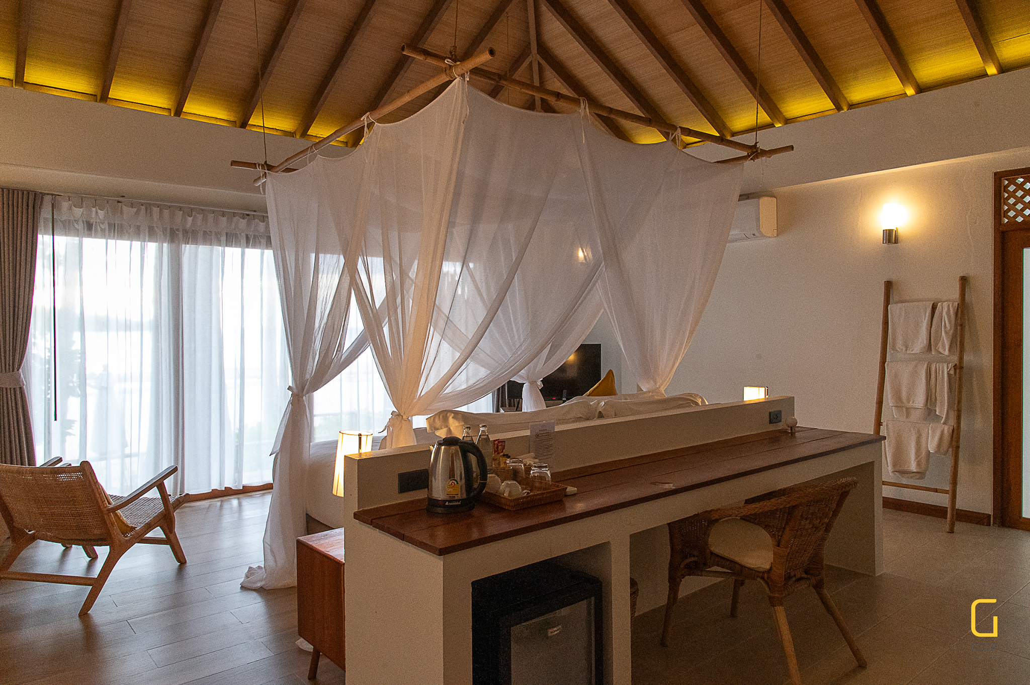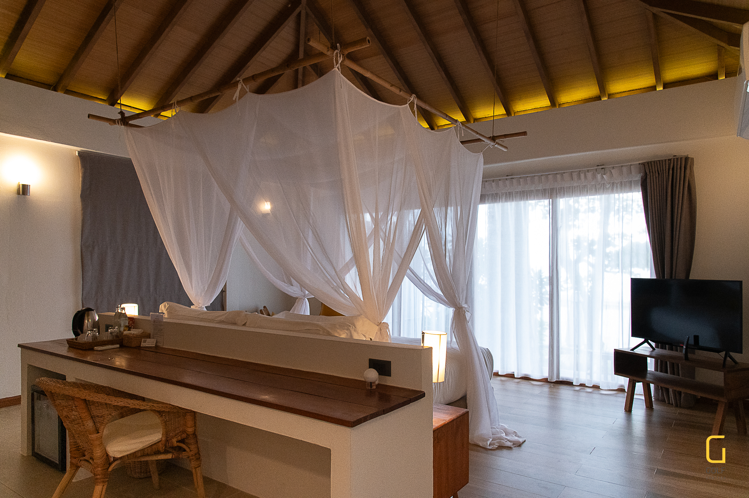 ShutterGolf พักแบบ Private Villa (ห้อง 1) ภายในห้องกว้างขวางมาก ที่ชื่นชอบมาก คือ การตื่นมาแล้วเห็นวิวทะเล รับแสงเช้า และมี Workspace ภายในห้องด้วย ในระหว่างวันสามารถทำงานไปด้วย ดู TV ไปด้วย และมองวิวทะเลไปด้วยนั่นเอง