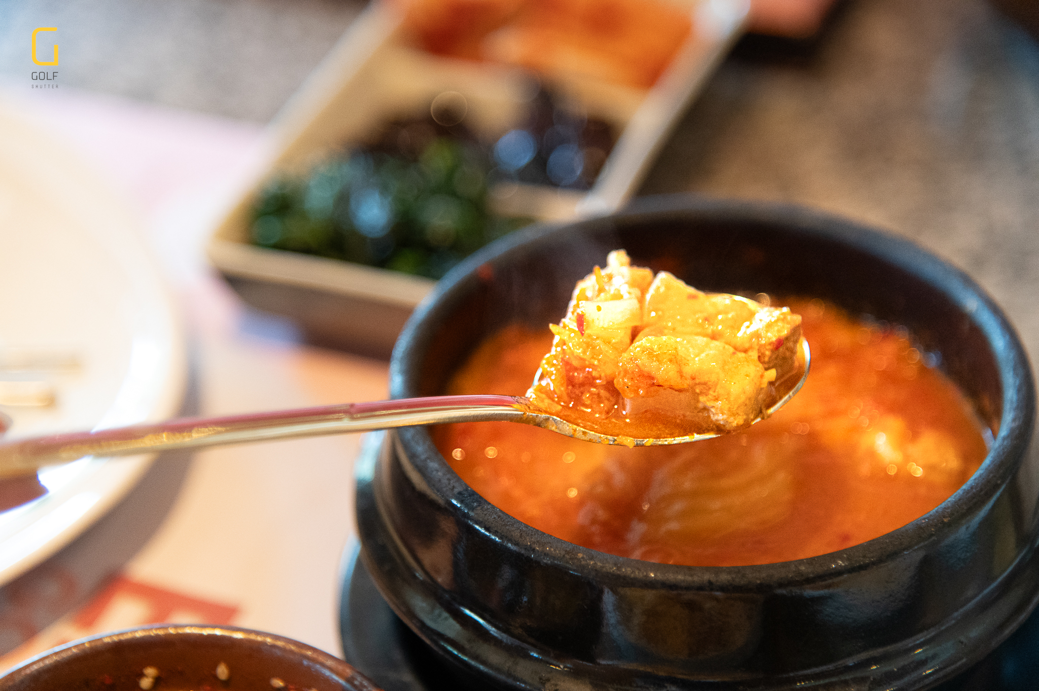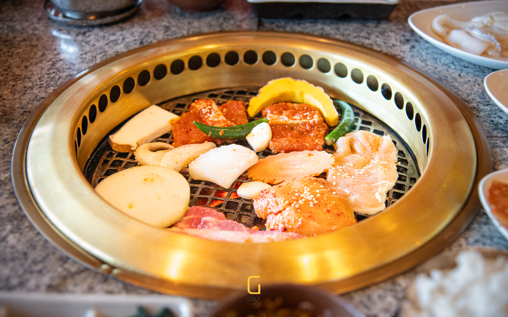 ShutterGolf ใช้เวลาอยู่ที่ Olympic Club ชั้น 8 นี้ไม่ต่ำกว่า 3 ชั่วโมง เพราะเพลิดเพลินมากกับบรรยากาศโดยรอบของที่นี่ ใกล้เที่ยงพอดี ดังนั้น จึงลงไปรับประทานอาหารเที่ยง โดยเลือกร้านอาหารที่มีชื่อเสียงมากของที่นี่ นั่นคือ ร้านอาหารปิ้งย่างเกาหลี Kongju นั่นเอง