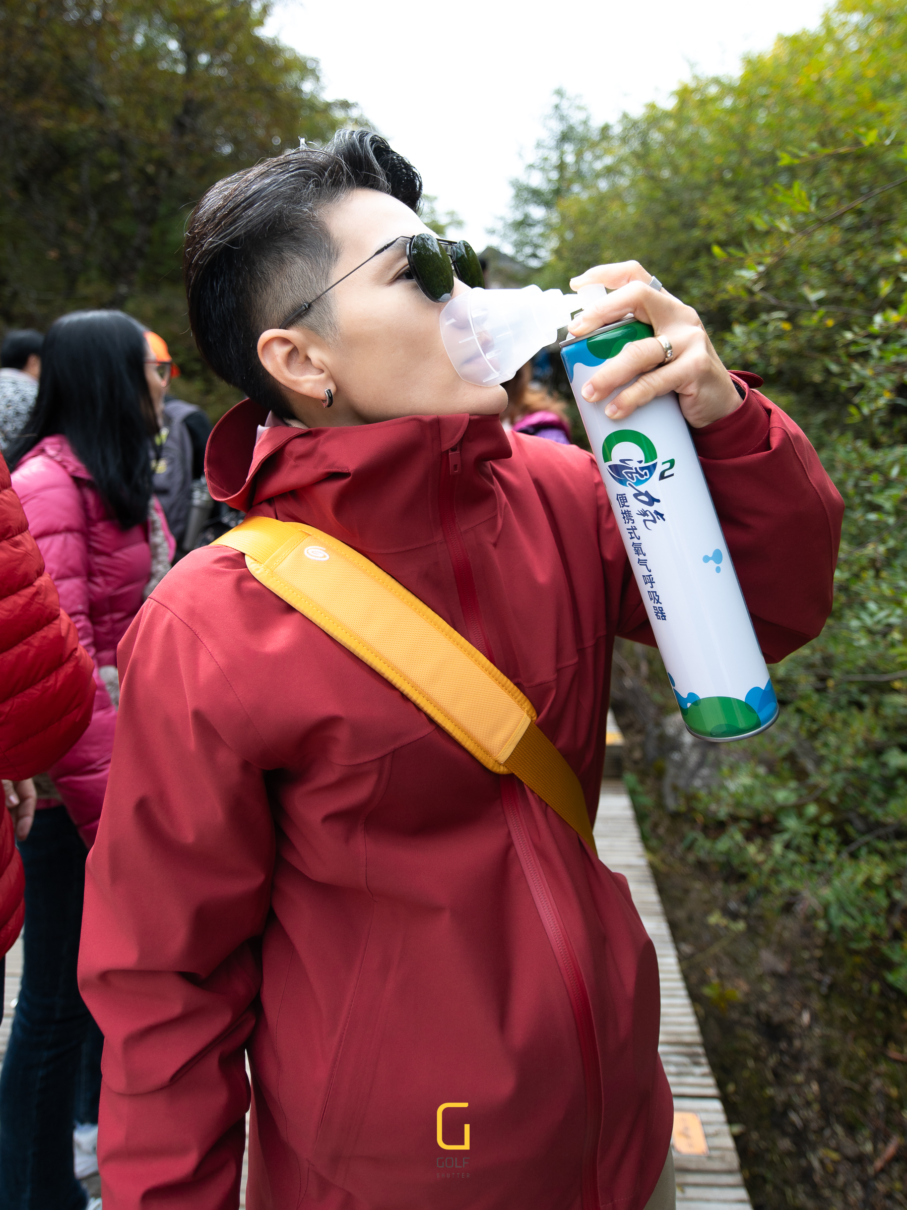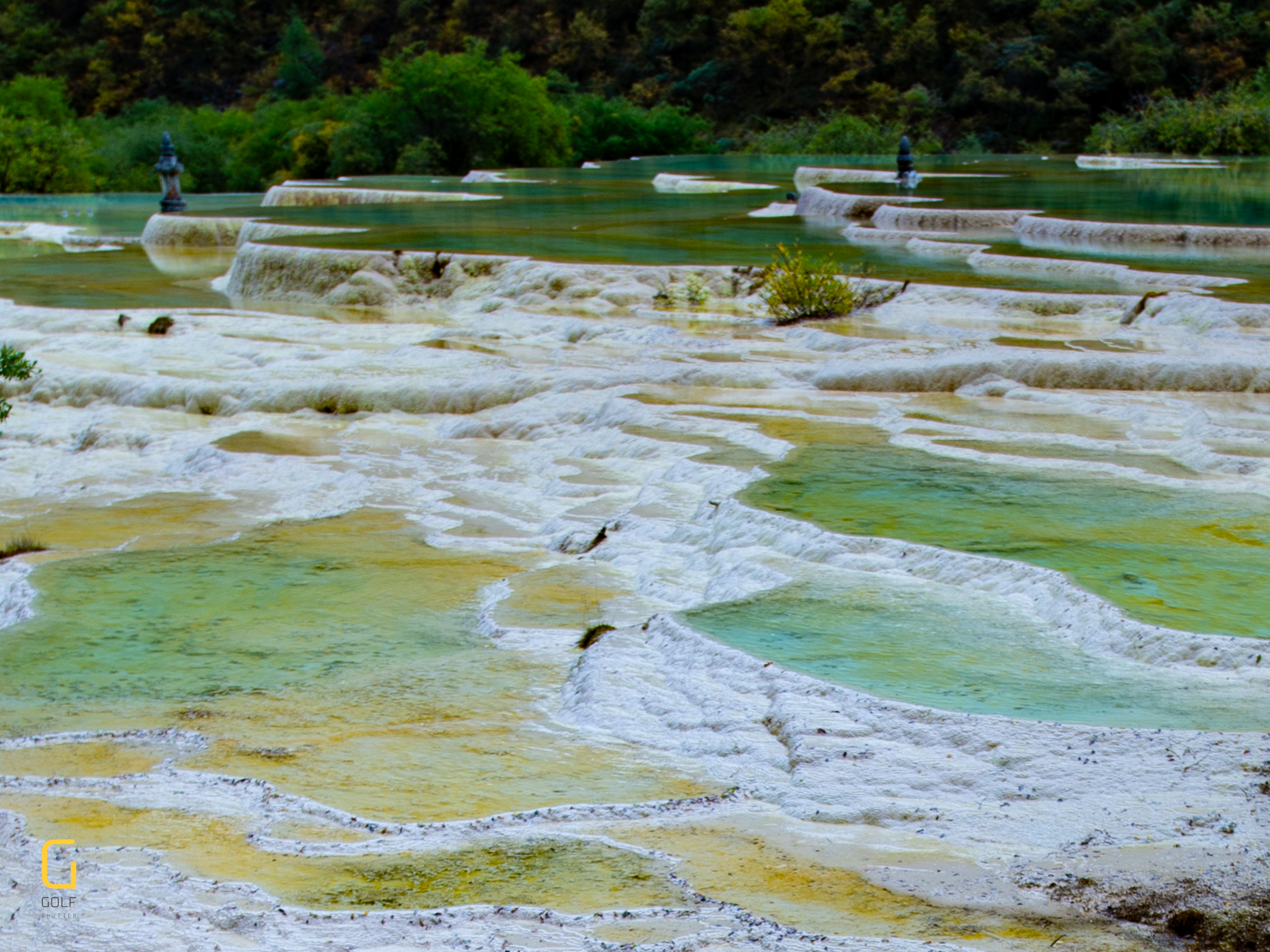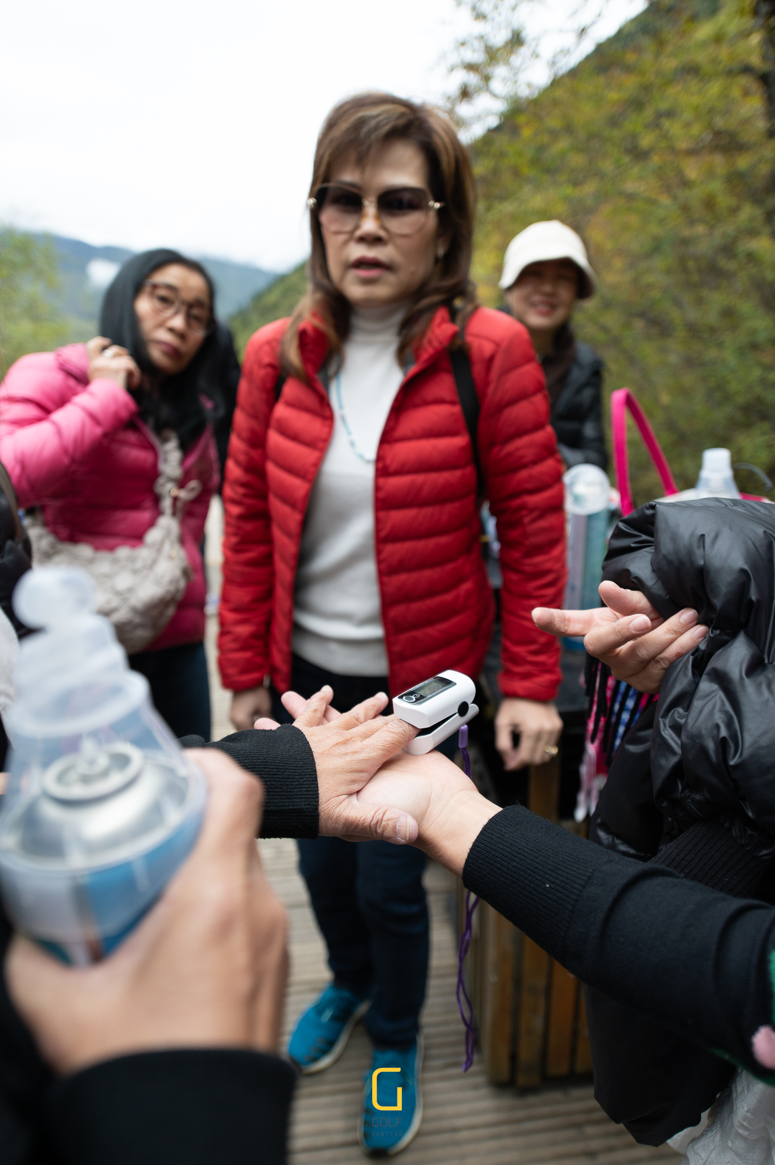 หลังจากนั้น ShutterGolf ก็ไปท่องเที่ยวอุทยานหวงหลง - เม่าเสี้ยน ซึ่งจะใช้เวลาเดินทางประมาณ 3 ชั่วโมงเพื่อชมความงามของลำธารที่ไหลมาจากภูเขาหิมะ จนเกิดเป็นหินปูนตกตะกอนเป็นแอ่งชั้นทั้งเล็กใหญ่รวมแล้วกว่า 4,000 ชั้น โดย ShutterGolf จะต้องนั่งรถ Golf เข้าไป แล้วไปขึ้นกระเช้าต่อ ที่นี่สูงจากระดับน้ำทะเลกว่า 3,000 เมตรทำให้อ๊อกซิเจนเบาบางมาก ShutterGolf จำเป็นต้องสูดอ๊อกซิเจนกระป๋องตลอดทาง เพราะมีอาการปวดหัวมาก วิงเวียน ตาลาย เหนื่อยง่าย หัวใจเต็นเร็ว และคลื่นไส้เป็นบางครั้ง ShutterGolf มีโอกาสได้ตรวจระดับอ๊อกซิเจนในเลือดระหว่างทางด้วย (ตามภาพ) ปรากฏว่า ShutterGolf เหลืออ๊อกซิเจนในเลือดเพียง 77 เท่านั้น จึงจำเป็นต้องหยุดพักระหว่างทางที่ไต่ขึ้นไปเพื่อให้ร่างกายดีขึ้นเสียก่อน หลังจากนั้น จึงเดินทางไปต่อ