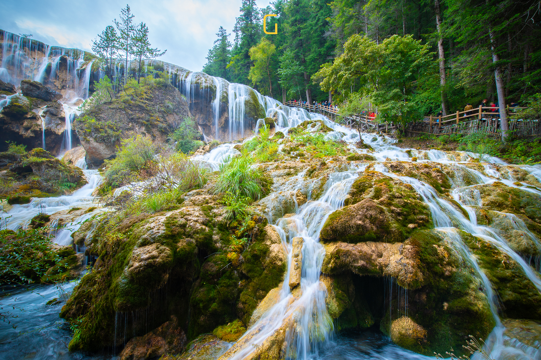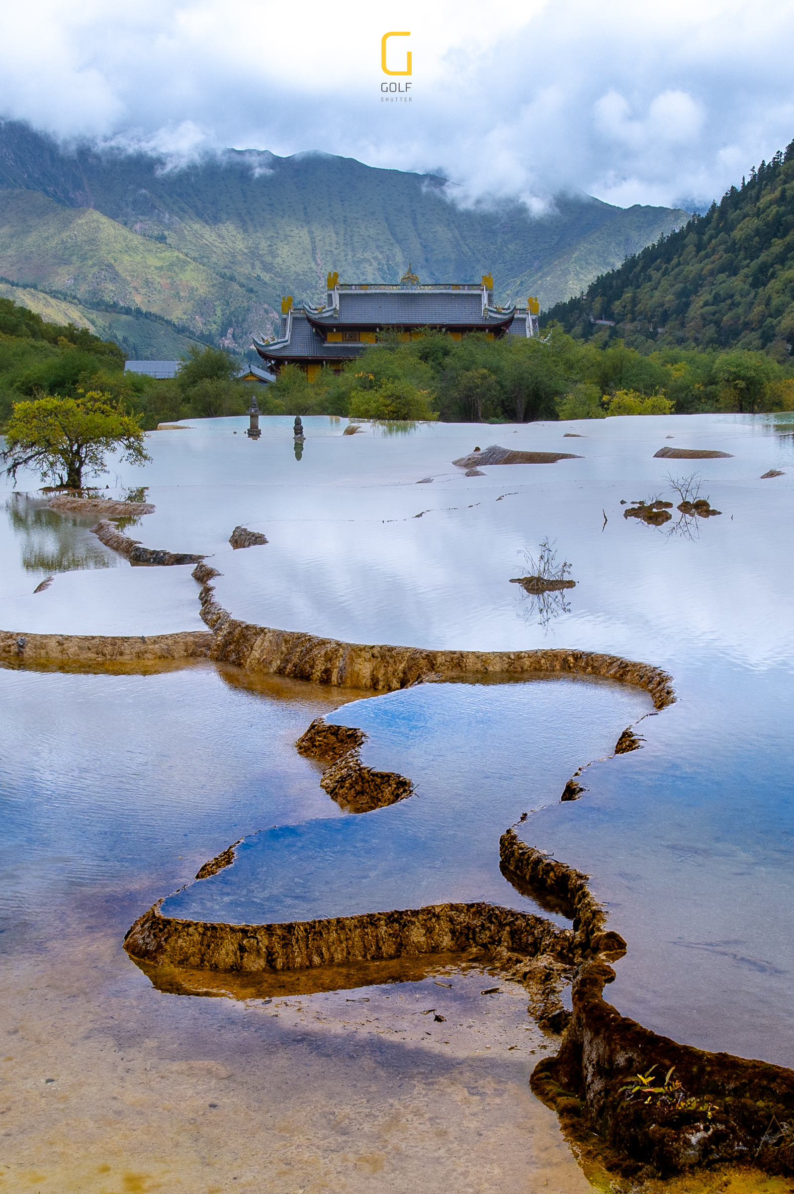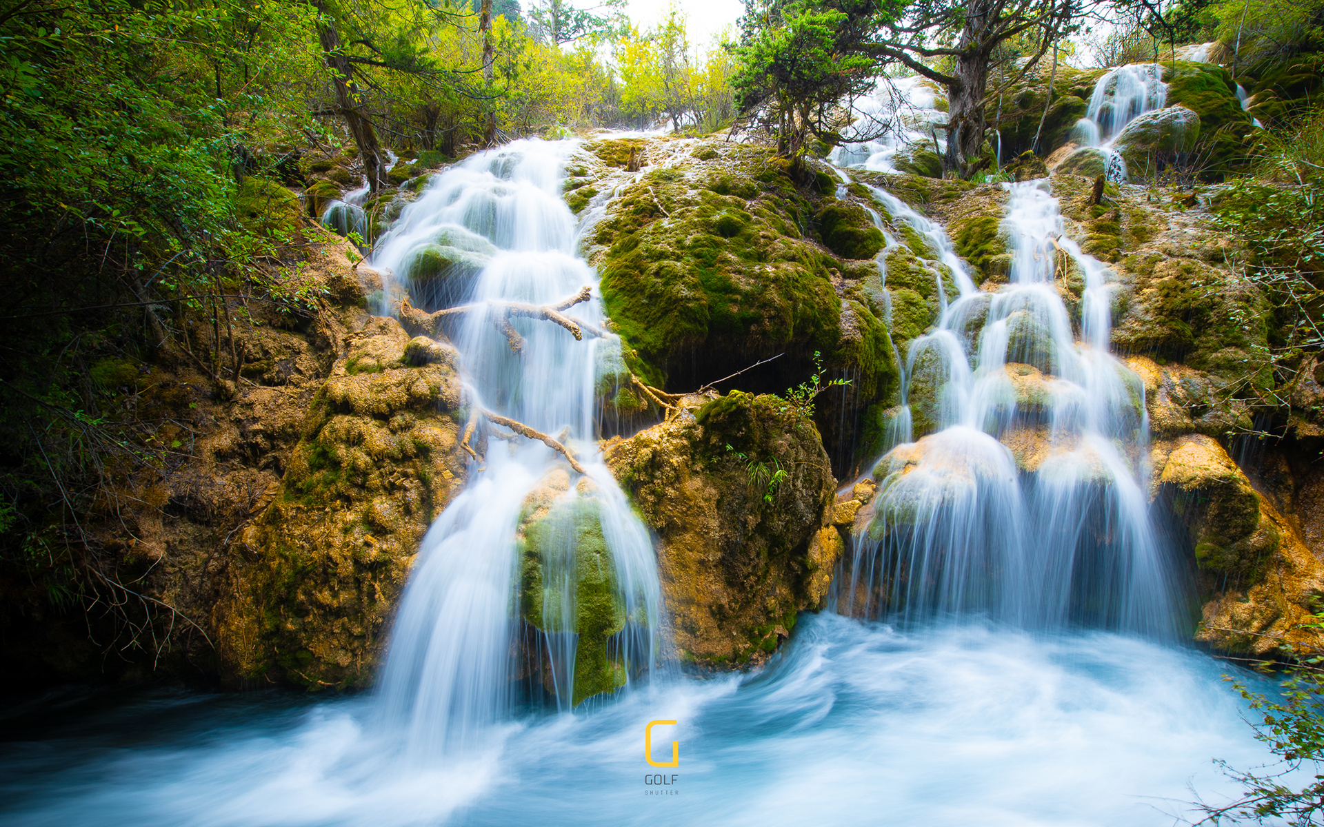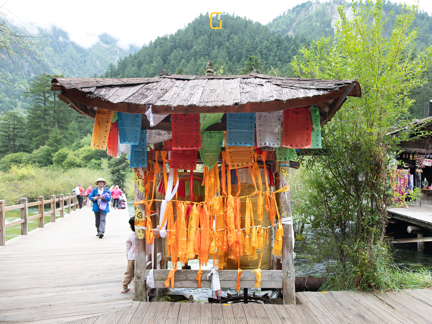 เห็นจามรีน่ารักขนนุ่มน่าสัมผัสแบบนี้ อย่าไว้ใจนะคะ เพราะดุมากค่ะ ถ้าไม่มีเจ้าของยืนกำกับอยู่ ShutterGolf ไม่กล้าเข้าใกล้เลย เพราะเพื่อนร่วมเดินทางโดนจามรีขวิดที่แก้มไป 1 ที เจ็บตัวกันไปค่ะ เนื่องจากที่นี่จัดได้ว่าเป็นชนบท ดังนั้น การบริการห้องน้ำจึงไม่สะดวกสบาย ไม่สะอาด และน้ำมีจำกัด ห้องน้ำยังเป็นแบบราง ประตูล็อคไม่ได้ (หลายคนคงนึกภาพออก เพราะอาจจะเคยได้ยินกิตติศัพท์เรื่องห้องน้ำในประเทศจีนกันมาบ้างแล้วนะคะ) นอกจากนี้ ผู้คนที่นี่ไม่พูดภาษาอังกฤษเลยแม้จะเป็นสถานที่ท่องเที่ยวก็ตาม ภาษามือและ Google Translate จึงสำคัญมาก หลังจากนั้น เมื่อถ่า่ยรูปเสร็จแล้ว ก็ออกเดินทางต่อจนถึงเมืองจิ่วจ้ายโกว ซึ่งเป็นมรดกโลก เป็นพื้นที่อนุรักษ์ธรรมชาติ ครอบคลุมพื้นที่กว่า 720 ตารางกิโลเมตร อยู่สูงกว่าระดับน้ำทะเลกว่า 2,500 เมตร อยู่ทางตอนเหนือของมณฑลเสฉวน ห่างจากเมืองเฉิงตูประมาณ 330 กิโลเมตร ShutterGolf มาเที่ยวที่นี่ในช่วงเดือนกันยายนนี้ เพราะสะดวกเรื่องเวลาและไม่ต้องกังวลว่าจะเป็นฤดูกาลท่องเที่ยวของที่นี่หรือไม่ เพราะที่นี่ท่องเที่ยวได้ตลอดปี จิ่วจ้ายโกว แปลว่า ธารน้ำเก้าหมู่บ้าน เพราะในอดีตนั้นมีหมู่บ้านของชาวทิเบต 9 หมู่บ้านอยู่ตามริมธารเหล่านี้ ที่นี่เต็มไปด้วยลำธารน้ำ ทะเลสาบและน้ำตก ซึ่งทะเลสาบนั้นจะมีสีมรกตใสสะอาด สะท้อนภาพของภูเขาและท้องฟ้าสีครามได้อย่างงดงาม ล้อมรอบด้วยป่าดงดิบอันสมบูรณ์