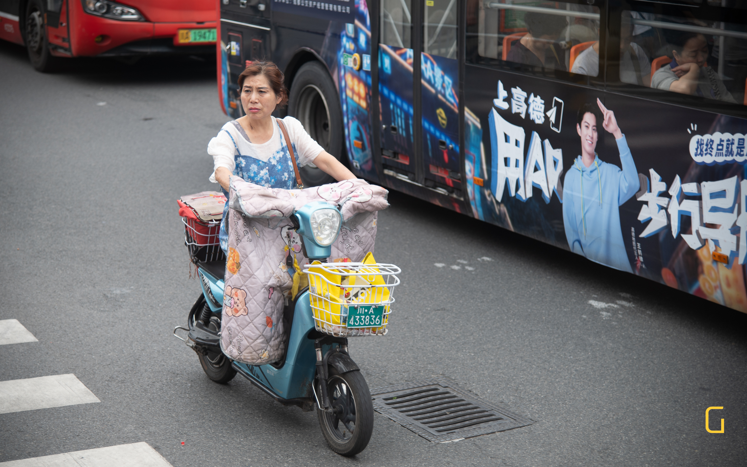 หลังจากนั้น ShutterGolf ก็มาถนนคนเดินซุนซีลู่ หรือ Walking Street ของเสฉวน ซึ่งเป็นย่าน Shopping ที่ทันสมัยของที่นี่เทียบได้กับ Siam Square ของบ้านเรานั่นแหละ จุด Check In คือ หมี Panda ยักษ์ปีนตึก (IFS Building)  ที่นี่ ShutterGolf ได้มีโอกาสได้เห็น Lifestyle ของคนเมือง ส่วนใหญ่สัญจรทางรถยนต์ส่วนตัวที่มีทั้งรถใช้น้ำมันและรถไฟฟ้า ที่นี่จะมีช่องทางเดินรถพิเศษสำหรับรถจักรยานและรถจักรยานยนต์ไฟฟ้าด้วยเพื่อจัดระเบียบเรื่องความปลอดภัย ผู้คนสามารถหยิบยืมรถจักรยานได้ซึ่งมีจอดเรียงรายตามท้องถนน จัดหาโดยรัฐบาลและเอกชน ซึ่งนับว่าสะดวกมากแก่ผู้คนที่นี่มาก