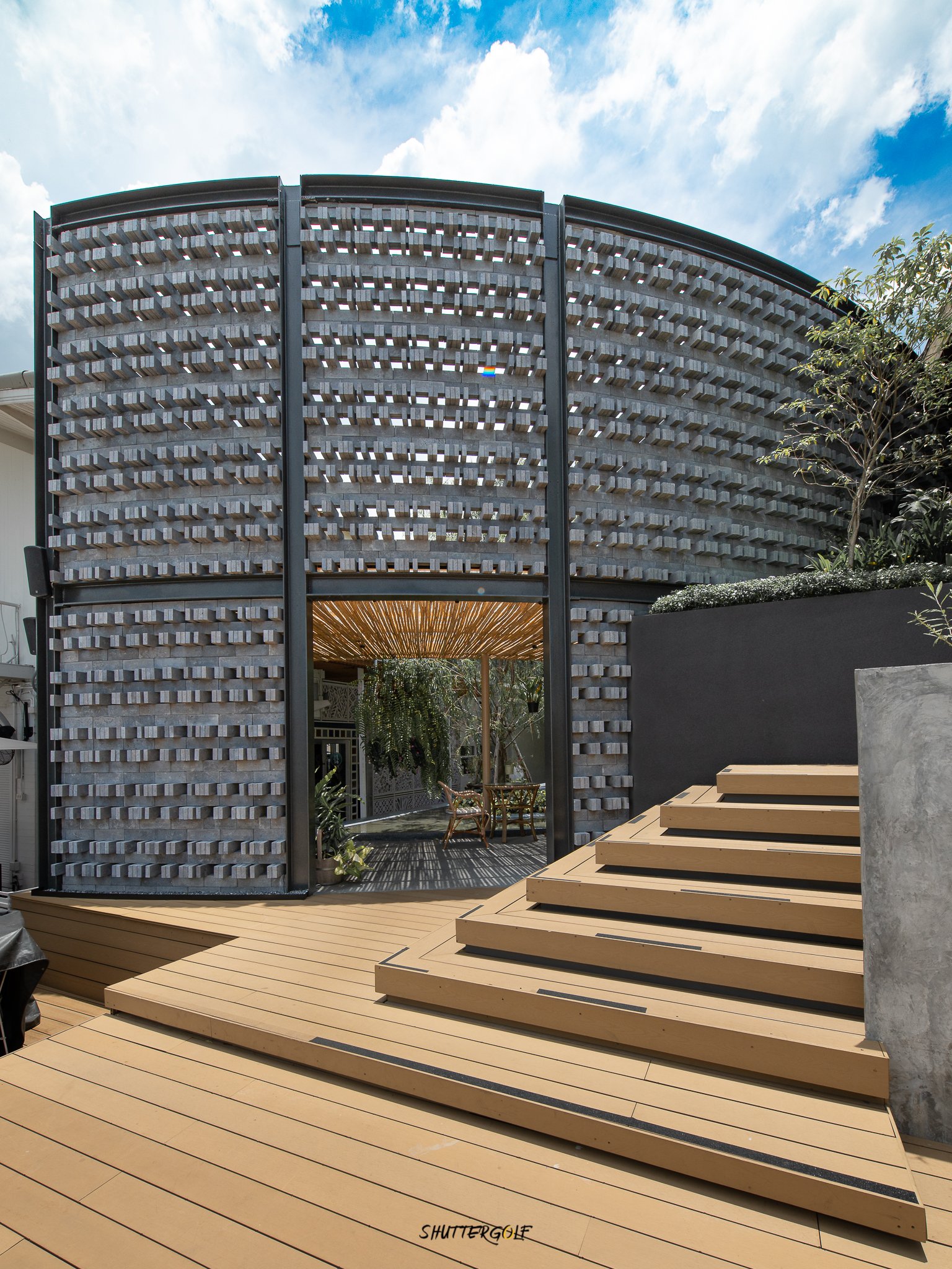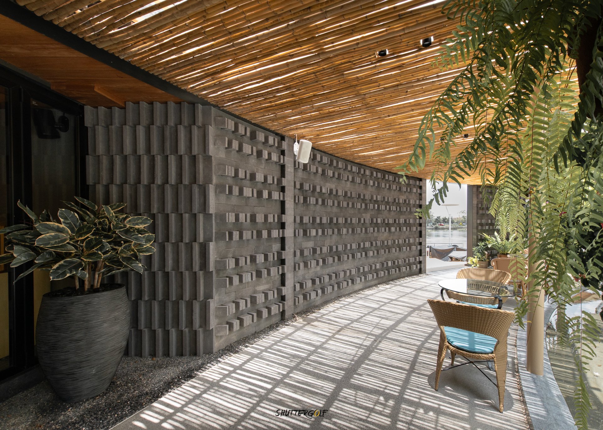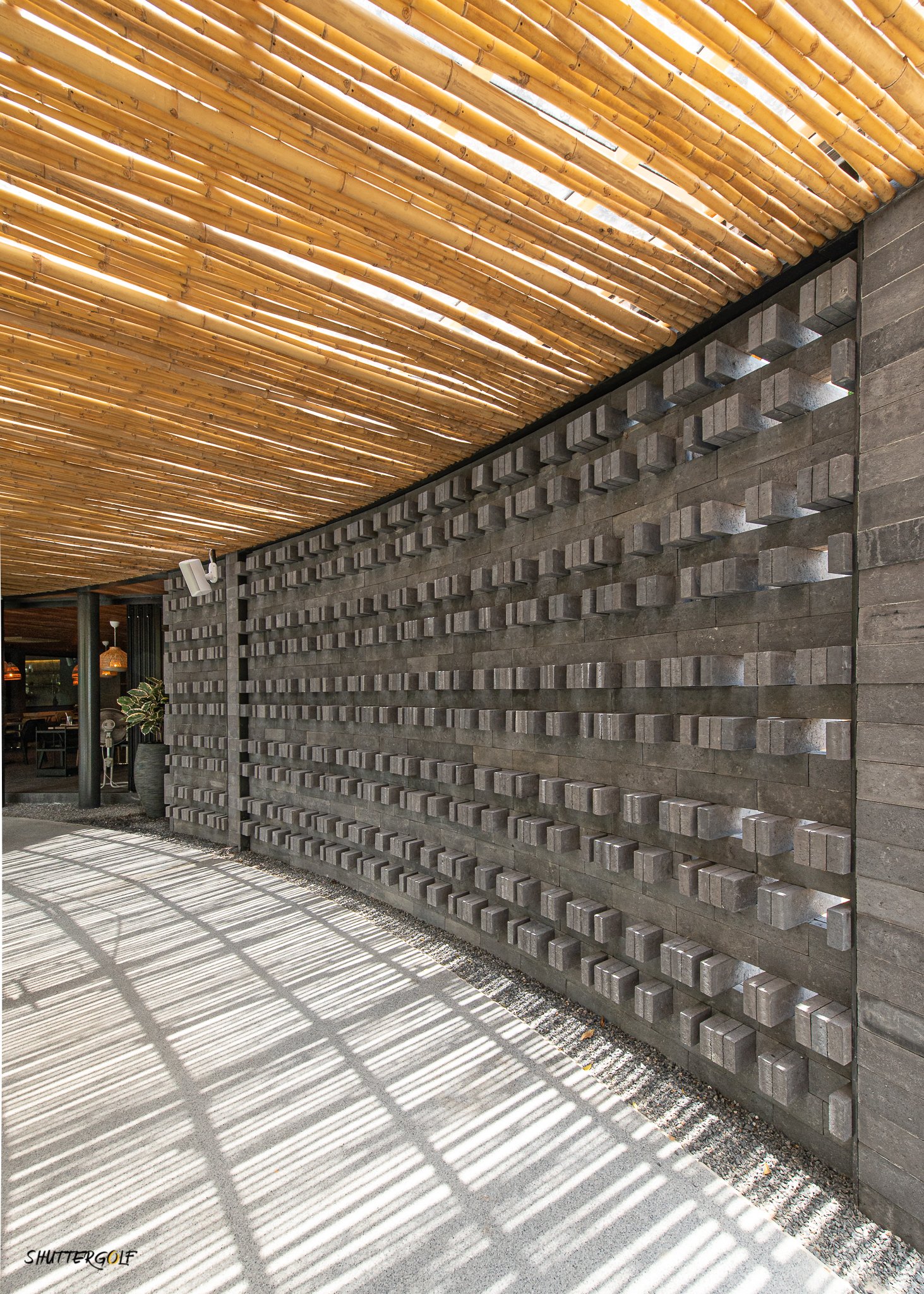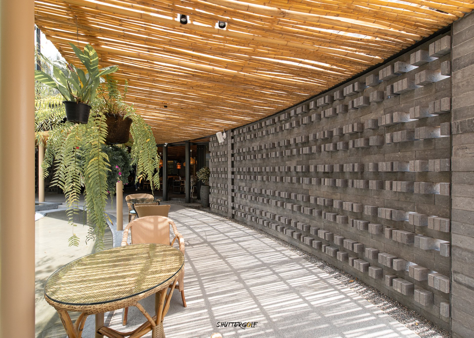 การตกแต่งโครงสร้างต่าง ๆ ใช้วัสดุธรรมชาติโดยส่วนใหญ่ คำนึงทิศลมและแสงแดดได้เป็นอย่างดี โดยเฉพาะอย่างยิ่งบริเวณทางเข้าที่ร่มรื่นจากต้นไม้ใหญ่ปกคลุม
